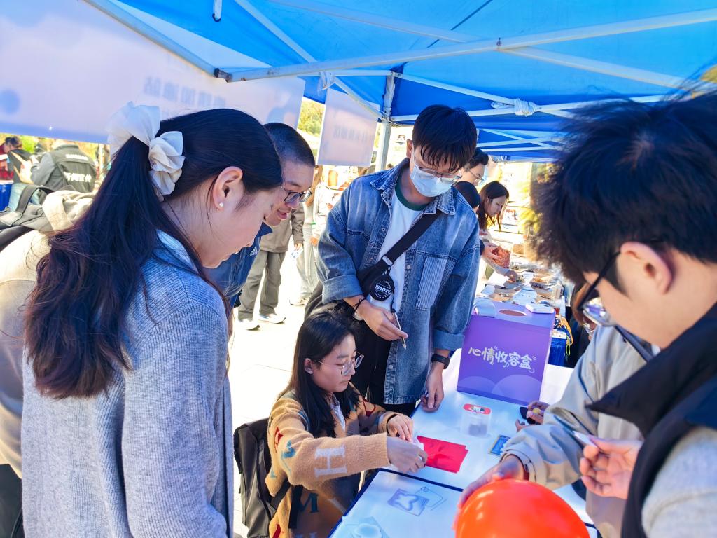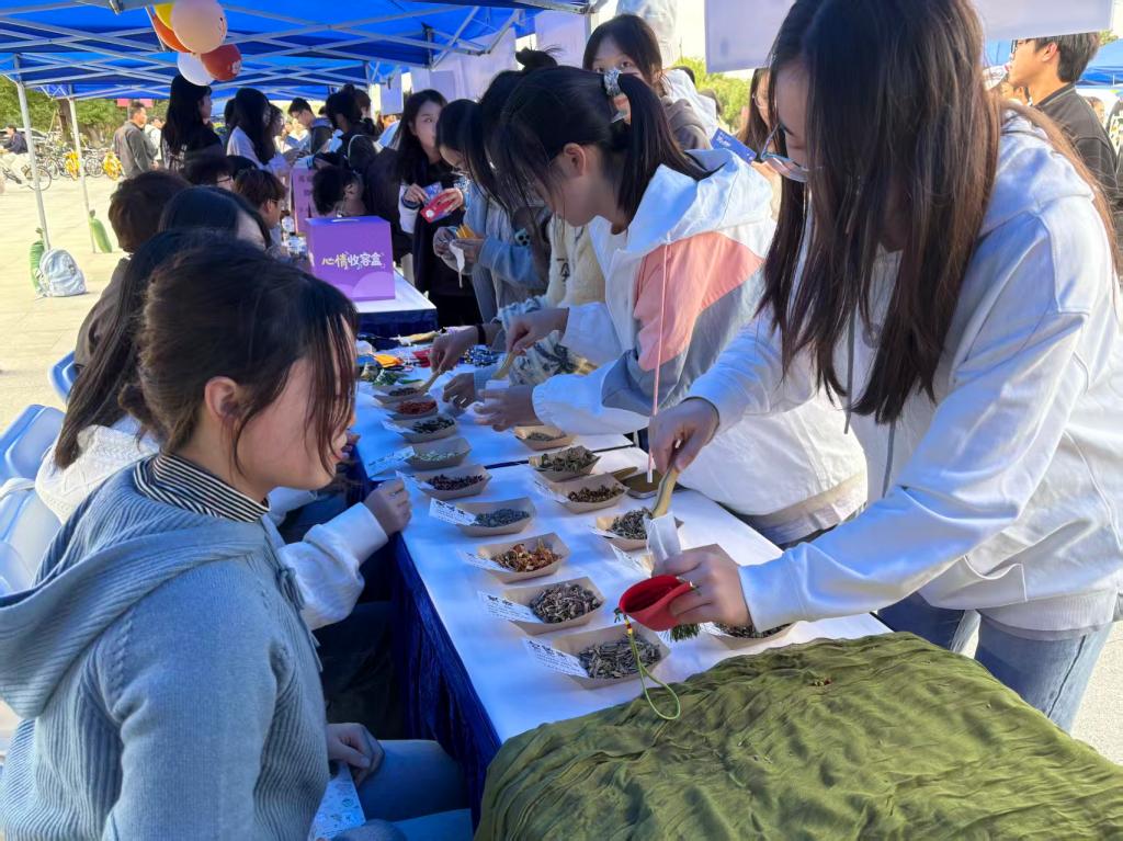 生涯资助与心理关怀,助力学生成长发展。生涯资助区开设了生涯规划指导,并开展资助政策现场咨询,为学生提供个性化服务,切实帮助学生解决成长过程中的实际需求;心理关怀区设有“心情加油站”、疗愈香囊DIY等互动环节,为学生提供心理支持与压力疏导;现场还设置了民族团结知识学习展位,学生们通过趣味互动增进对民族文化的了解。