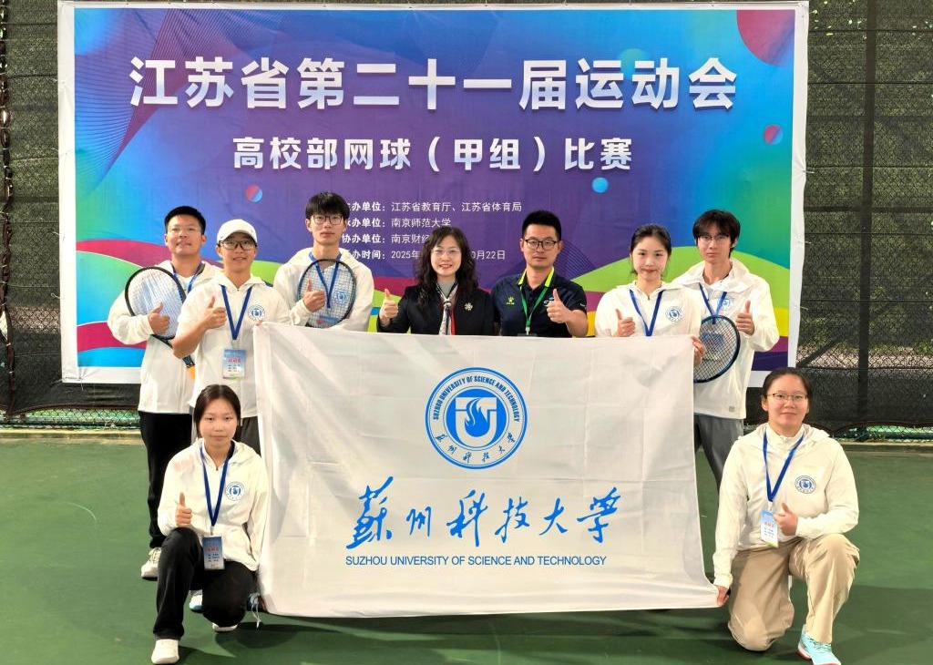 10月17日-10月22日,江苏省第二十一届运动会高校部网球(甲组)比赛在南京举办。机械工程学院刘一诺获得女子单打冠军,刘一诺和国际教育学院林顾安琪获得女子双打冠军,刘一诺、林顾安琪、建筑与城市规划学院付梦瑜、商学院何皖琪获得女子团体季军,社会发展与公共管理学院陶天一获得男子单打第七名,材料科学与工程学院钱益获得男子单打第八名,建筑与城市规划学院付梦瑜和材料科学与工程学院肖轶睿获得“体育道德风尚奖运动员”称号,孟良老师获评“优秀教练员”称号。