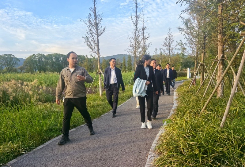 随后,校、院两级党委理论学习中心组成员赴消夏湾湿地生态安全缓冲区项目现场参观,苏州德华生态环境科技股份有限公司生态工程师曹晗介绍了项目背景、实施方法、建设成效等情况。该项目总汇水面积约18平方公里,规划建设各类科技湿地和浅滩湿地共210公顷,分三期建设。目前已实施完成的一期项目建成2.8公里沿江栈道,15.5公顷湿地自然公园,在治理面源污染的同时显著提升了消夏江岸线人居环境,也使消夏湾湿地成为网红打卡地。中心组成员边看、边听,沉浸式体验太湖生态治理所取得的丰硕成果,深刻领会习近平生态文明思想的实践伟力。