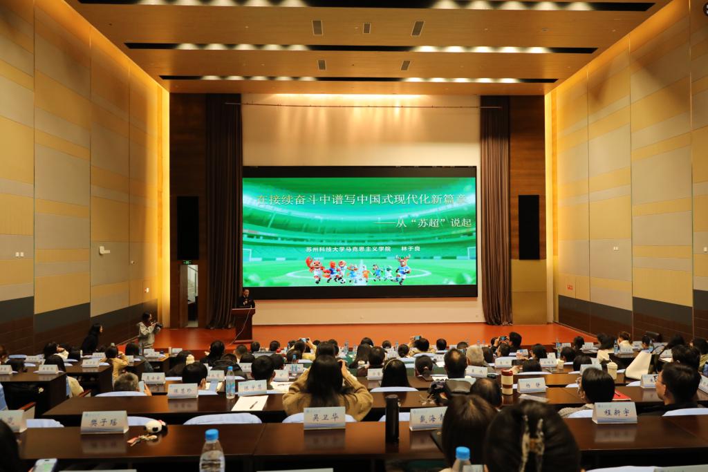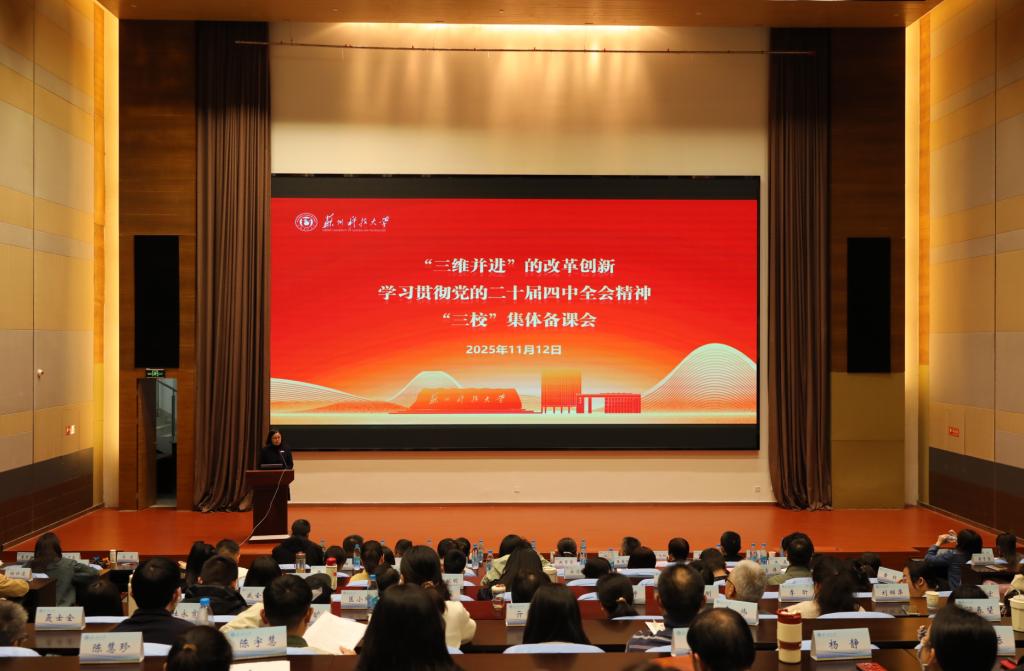为深入学习领会党的二十届四中全会精神,准确把握核心要义,推动全会精神有机融入思想政治理论课教学,切实增强思政课的针对性和实效性,11月12日,我校立足“三维并进”教学改革,联合苏州经贸职业技术学院马克思主义学院、苏州卫生职业技术学院马克思主义学院在图书馆一楼报告厅举办学习贯彻党的二十届四中全会精神集体备课会。校长顾菊平,校党委副书记洪晔,党委常委、副校长温波出席备课会,三校相关职能部门负责人、全体思政课教师和辅导员代表参加活动。