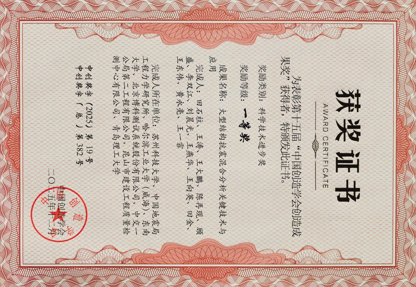 据悉,本届“中国创造学会创造成果奖(科学技术进步奖)”共评选出特等奖2项、一等奖9项、二等奖21项、三等奖10项。该成果以城市更新和韧性城市建设为战略背景,以防灾减灾科技创新支撑为目标,针对大型结构整体抗震研究面临的瓶颈制约,从抗震混合分析的理论方法到技术应用取得系统性突破,实现从“技术跟跑”到“标准引领”的跨越,彰显了地震工程研究的科技支撑能力。