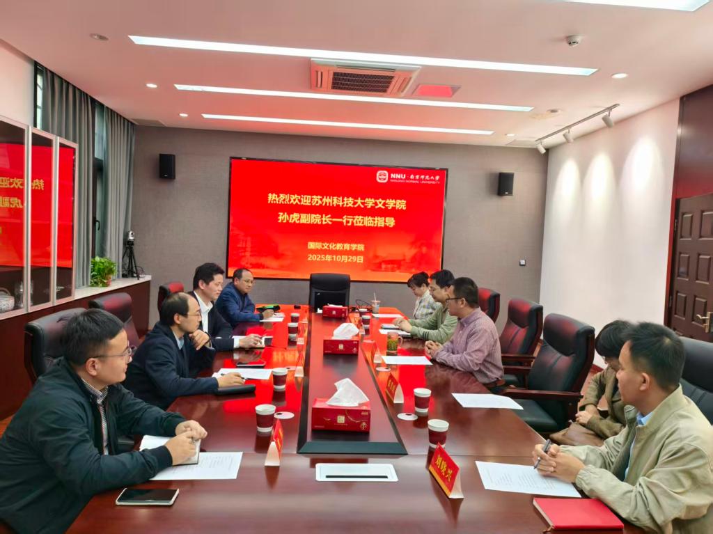 在南京师范大学,孙虎表示,此次来访旨在学习借鉴南师大在外国留学生人才培养方案设计、课程体系构建、实践教学环节设置、师资队伍建设、质量保障体系等方面的宝贵经验。南京师范大学国际文化教育学院副院长王大平介绍了南师大国际文化教育学院的发展历程、办学特色以及在留学生汉语言文学本科专业建设方面的总体情况。