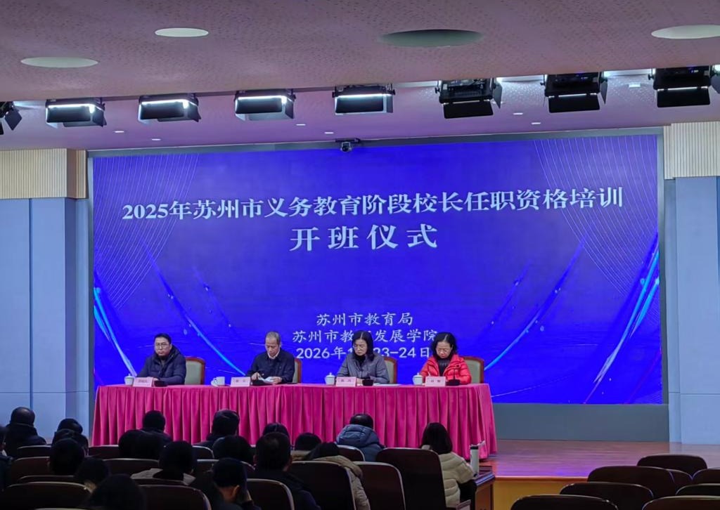 1月23日至24日,由苏州市教育局、苏州市教师发展学院主办,我校承办的2025年苏州市义务教育阶段校长任职资格培训顺利举行开班仪式,并完成第一阶段集中研修。市委教育工委副书记徐卫、市教育局教师工作处处长陈鸿,市教师发展学院院长刘雁、我校文学院党委副书记瞿晓庆等出席开班仪式。