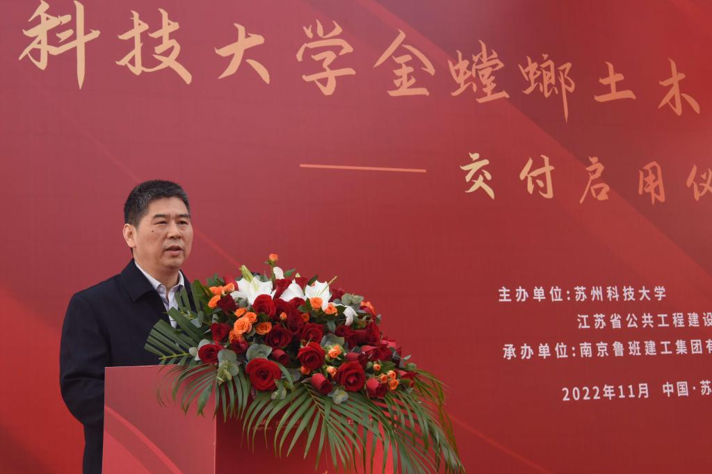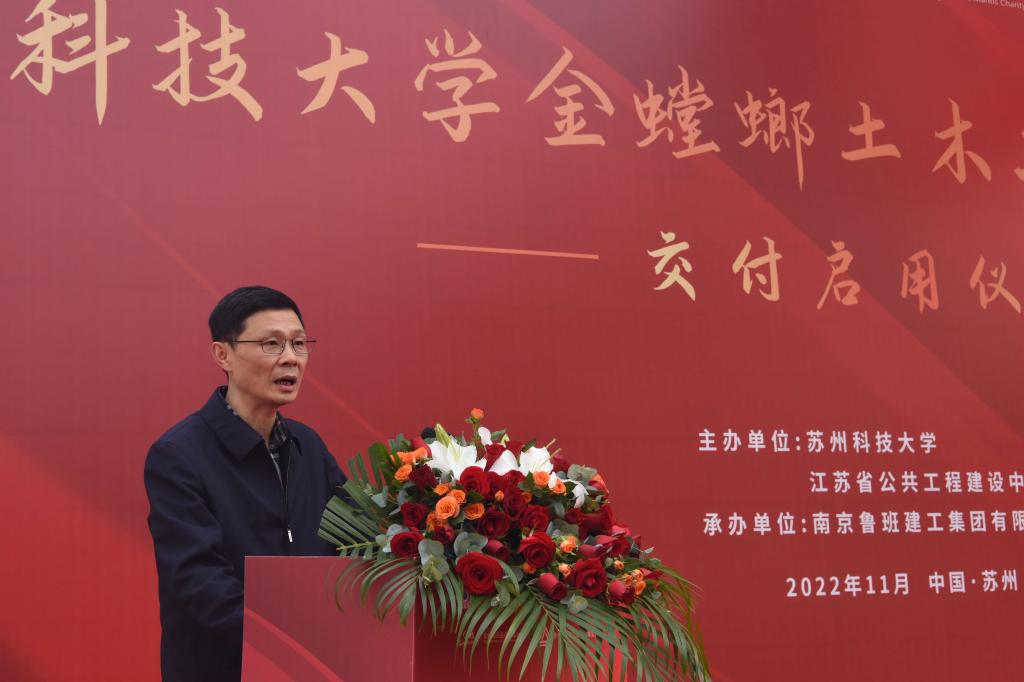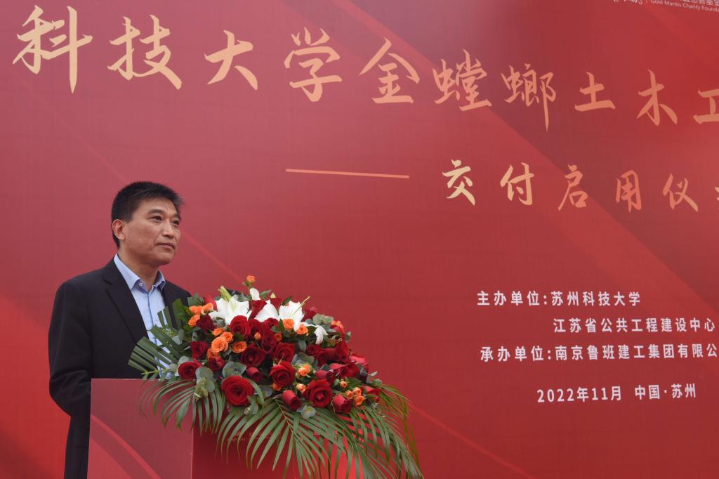11月10日上午,苏州科技大学金螳螂土木工程创新实践中心交付启用仪式在江枫校区举行。江苏省住建厅集中建设处副处长冯刚,金螳螂建筑装饰股份有限公司副总裁、金螳螂公益慈善基金会负责人张文英,金螳螂公益慈善基金会秘书长徐嘉,省公共工程建设中心有限公司副总经理娄永峰,我校党委书记姜朋明,校长顾菊平,党委常委、副校长张新亚出席仪式。党办、校办、党委宣传部、资产与后勤管理处、基建处、后勤服务总公司等相关职能部门和土木工程学院负责人,相关建设单位负责人、师生代表等参加仪式,仪式由张新亚主持。