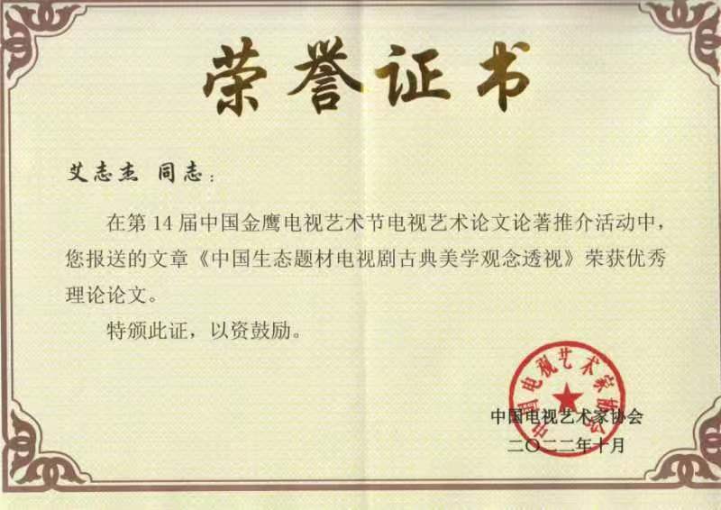 近日,第31届中国电视金鹰奖暨第14届中国金鹰电视艺术节成功举办。我校文学院广播电视学系副主任艾志杰博士受邀参加,其研究成果《中国生态题材电视剧古典美学观念透视》荣获“优秀理论论文奖”。