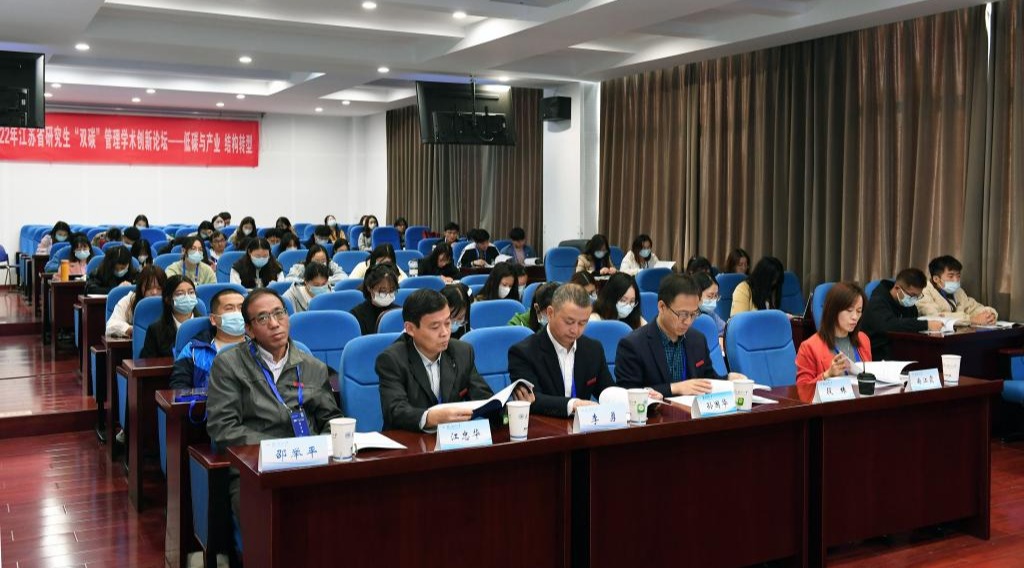 11月5日,由江苏省管理学类研究生教育指导委员会主办、我校承办的2022江苏省研究生“双碳”管理学术创新论坛“低碳与产业结构转型”分论坛在商学院成功举办。会议采取线上线下相结合的方式同步进行,中国教育在线网络平台全程直播。来自南京大学等30余所高校的专家学者、研究生及业界人士出席了本论坛。