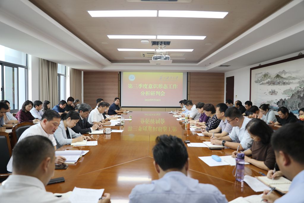 9月26日上午,学校在行政楼五(2)会议室召开第三季度意识形态工作分析研判会。学校意识形态工作领导小组成员、各二级党组织书记参加会议。会议由校党委书记姜朋明主持。