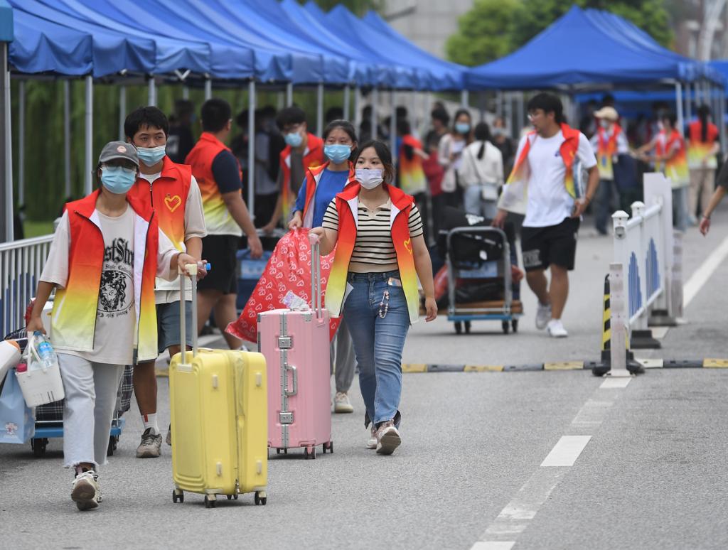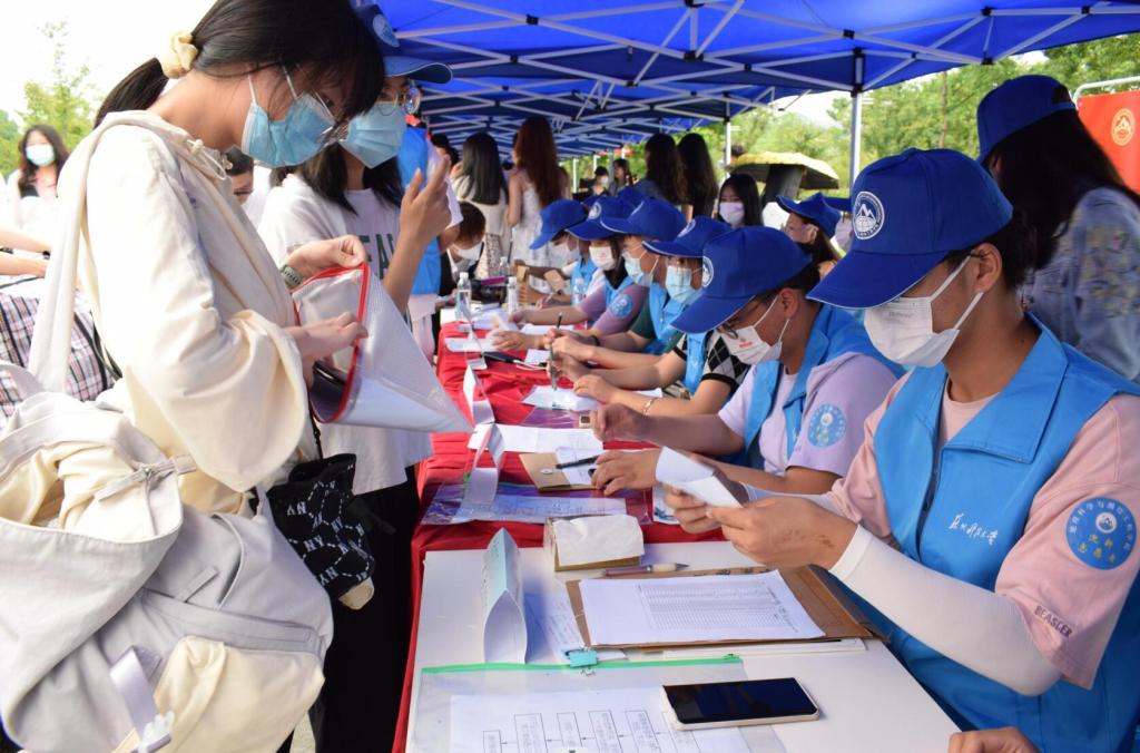 “接过你的行李,我们就是一家人。”迎新现场,到处都是工作人员和大学生志愿者忙碌的身影。各学院成立迎新接待组,组建“一对一”“多对一”迎新志愿者服务队,进行防疫情况审核,引导新生办理报到手续,提供热情周到的服务,保障新生报到工作有序高效开展。