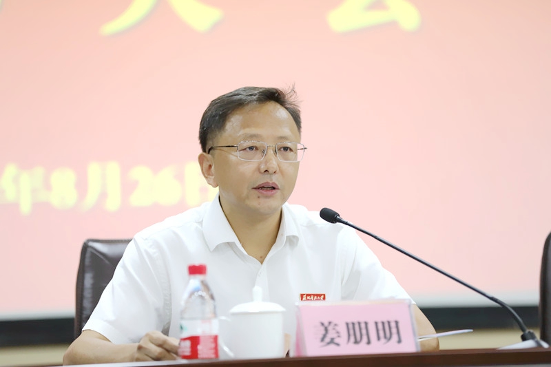 8月26日上午,学校在行政楼一楼报告厅召开新领导班子成立后的首次中层干部大会。全体校领导、中层干部出席大会,大会由校党委书记姜朋明主持。