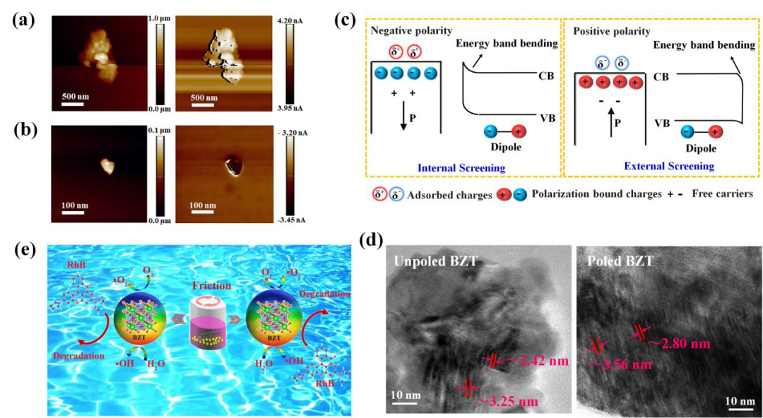 论文题为“Enhanced tribocatalytic degradation of dye pollutants through governing the charge accumulations on the surface of ferroelectric barium zirconium titanate particles”。该研究利用功能材料的自发极化、压电性和热释电性,实现了机械能-电能-化学能的综合应用在降解染料废水方面的重大突破,为净化污染水源提供了新的解决思路。