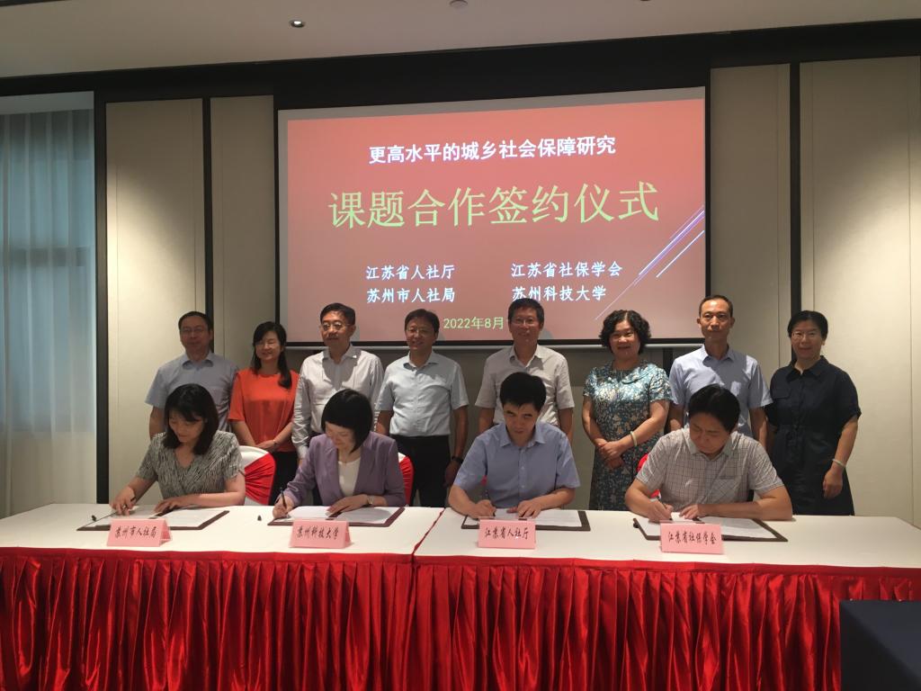 8月18日上午,我校与省人力资源和社会保障厅、江苏省社会保险学会、苏州市人力资源和社会保障局举行课题合作签约仪式。省人社厅党组成员、副厅长、省社保学会会长梅仕城,苏州市人社局相关领导,我校党委书记姜朋明,人文社科处、社会发展与公共管理学院相关领导等出席。