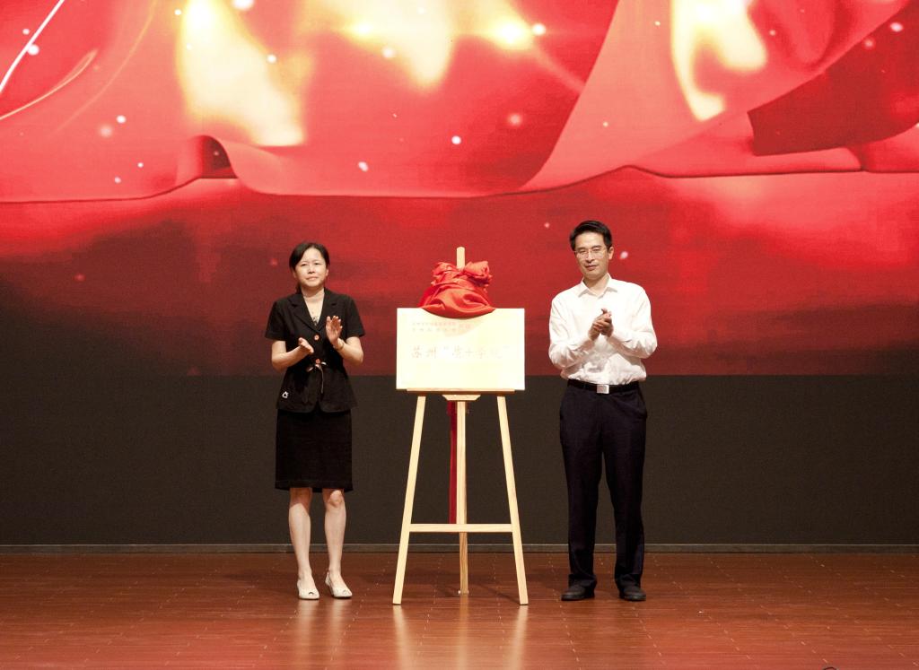 韦锋与唐柏鉴代表双方签署了共建协议,钱斌与顾菊平共同为地校共建苏州“质+学院”揭牌。