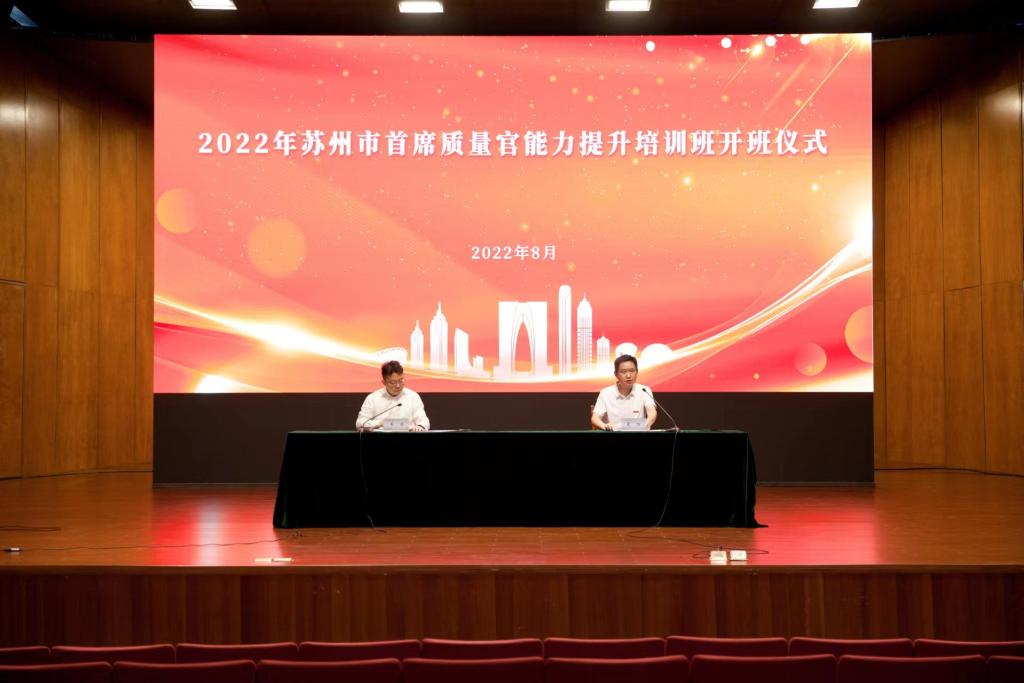 仪式后,2022年苏州市首席质量官能力提升培训班开班,来自全市各区(市)企业的110名首席质量官参加了培训。