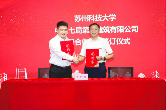 7月18日下午,我校与中建七局二公司举行战略合作协议签订仪式。校长姜朋明,中建七局二公司党委书记、董事长尚恺喆,我校教务处、研究生院、科技产业处、土木工程学院,江苏省规划设计集团昆山分院、昆山市水务局、中建七局二公司相关领导出席本次活动。
