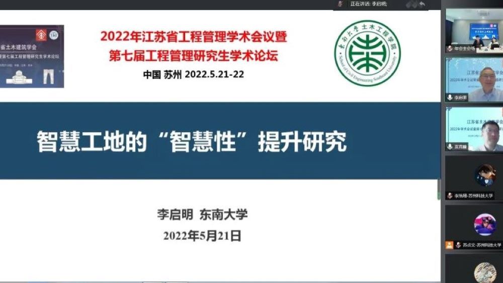 5月21日至22日,江苏省工程管理学术会议暨第七届工程管理研究生学术论坛在我校顺利举办。此次论坛以腾讯会议的形式,在线参会、直播收看嘉宾累计近1500人。