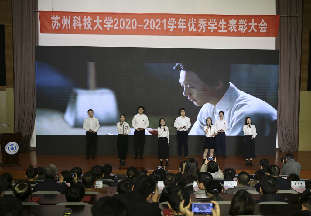 12月27日下午,我校2020-2021学年“青春向党 奋进笃行”优秀学生表彰大会在石湖校区图书馆报告厅举行。校党委副书记王荣庆,副校长吴健荣、沈耀良,校党委常委、组织部部长宫向阳及相关职能部门负责人出席大会并颁奖。