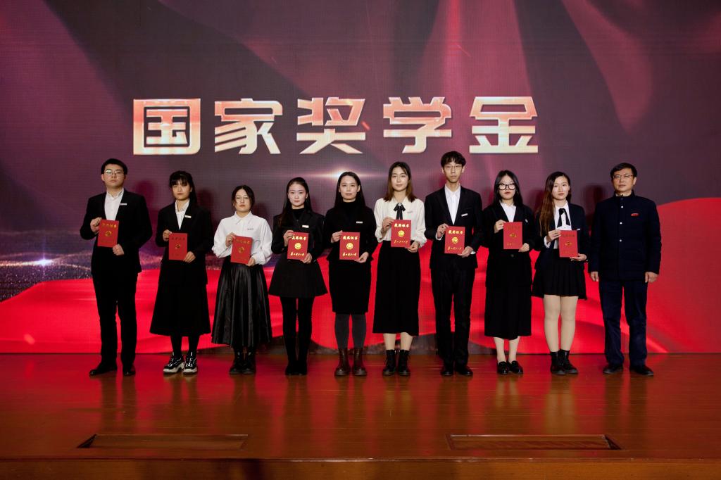 表彰大会分为“领航”“扬帆”“奋楫”三个篇章。在“领航”篇章中,学校表彰了获得国家奖学金、第七届中国国际“互联网+”大学生创新创业大赛全国银奖、铜奖、2021美国大学生数学建模竞赛特等奖提名奖的学生代表以及团队代表。第七届中国国际“互联网+”大学生创新创业大赛全国银奖获得者、迅达存储团队负责人施智明同学分享了他们的项目以及参赛经历。在“扬帆”篇章中,学校表彰了获得江苏省三好学生、江苏省优秀学生干部以及江苏省先进班集体的学生代表以及班级代表。江苏省先进班集体、商学院物流1812班班长陈泽顿同学分享了他们的青春故事。在“奋楫”篇章中,学校表彰了获得2021年校大学生年度人物、校优良学风班标兵的学生代表以及班级代表。2021年校大学生年度人物、艺术学院袁梦同学分享了她助力乡村振兴的创业故事。