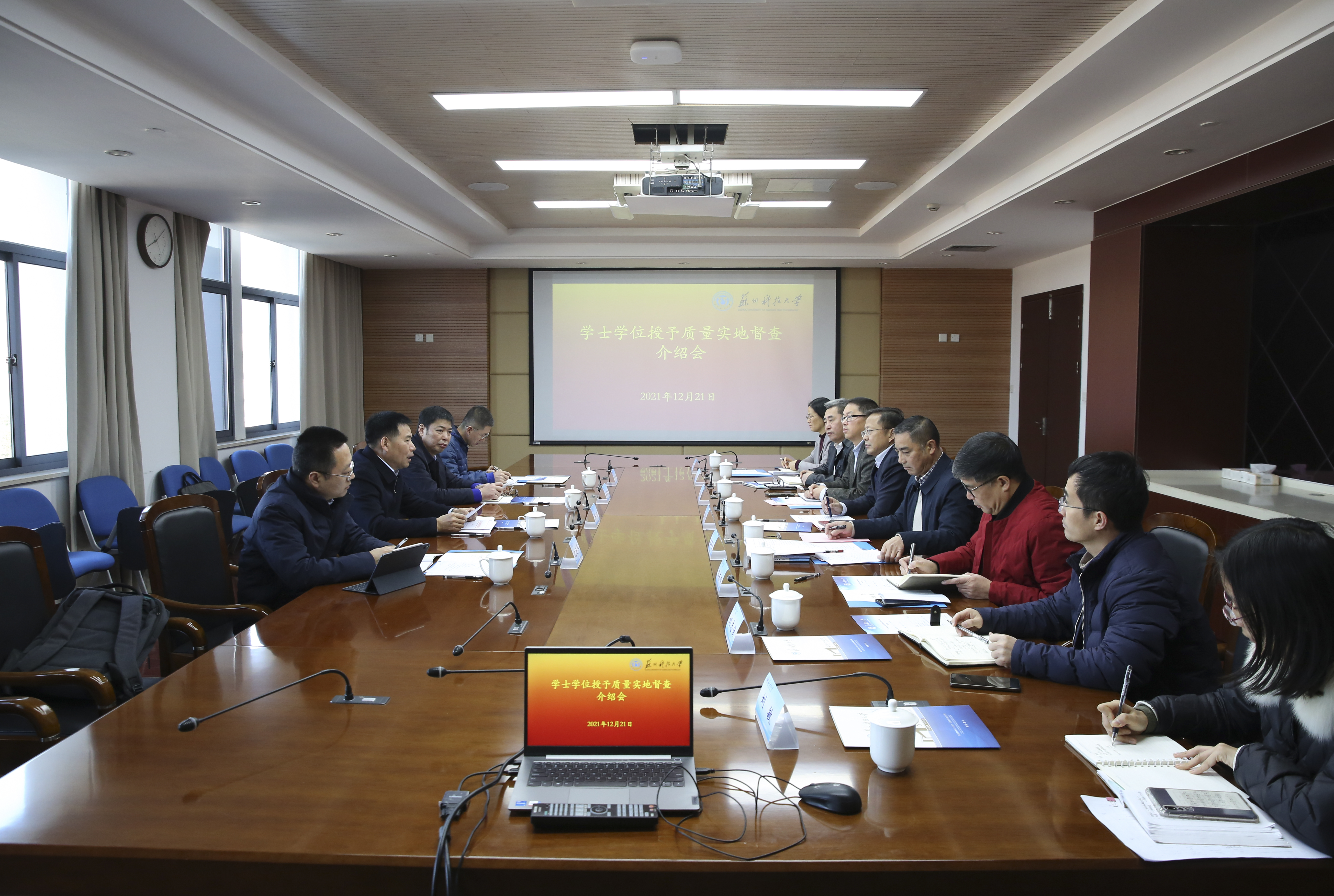 12月21日,江苏省人民政府教育督导委员会办公室组织由江苏省教育厅原一级巡视员洪流任组长的督查专家组一行4人,对我校学士学位授予质量进行实地督查。校长姜朋明、副校长沈耀良,教务处、研究生部、学生工作处、相关学院负责人等出席督查工作介绍会和反馈会。