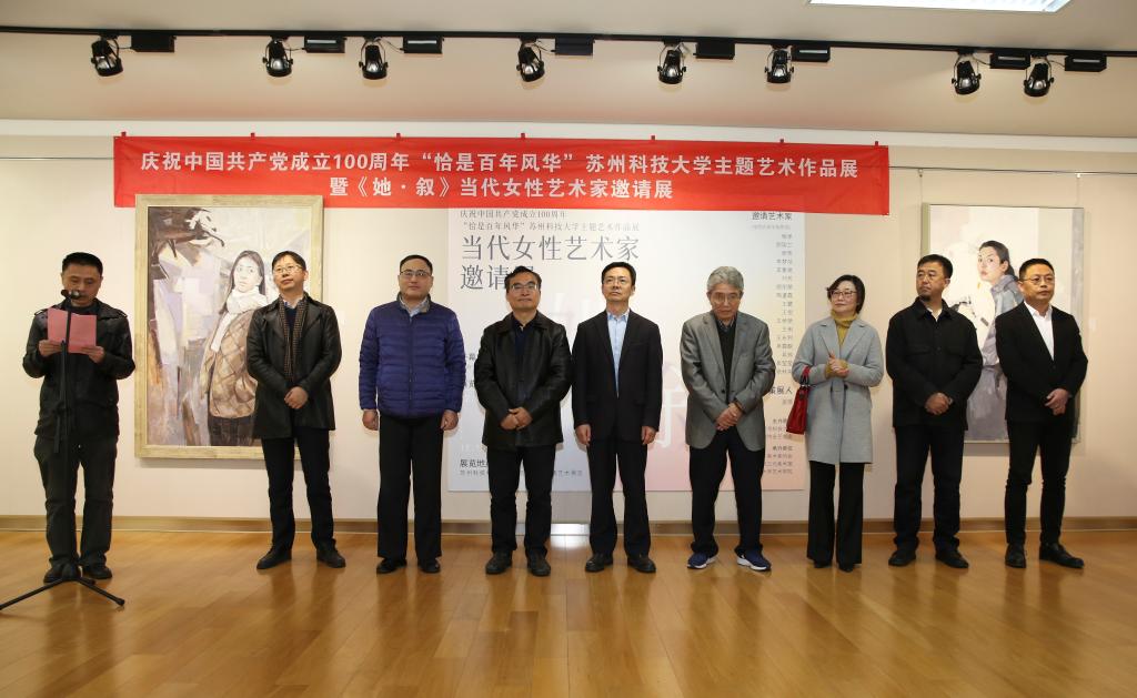 近日,庆祝中国共产党成立100周年“恰是百年风华”主题艺术作品展暨《她·叙》当代女性艺术家邀请展在我校石湖校区图书馆九楼艺术展区开展。校党委副书记王荣庆,校党委组织部部长、宣传部代理部长宫向阳,江苏省书法家协会、苏州美术家协会、苏州青年美术家协会和我校艺术学院相关领导,全体参展女艺术家,以及学校师生代表出席了开幕式。开幕式由艺术学院狄野教授主持。