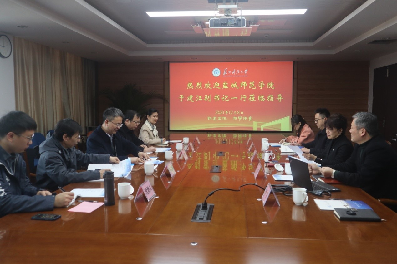 近日,盐城师范学院党委副书记于建江一行来校调研,总会计师陈焕娣和财务处相关人员参加调研。