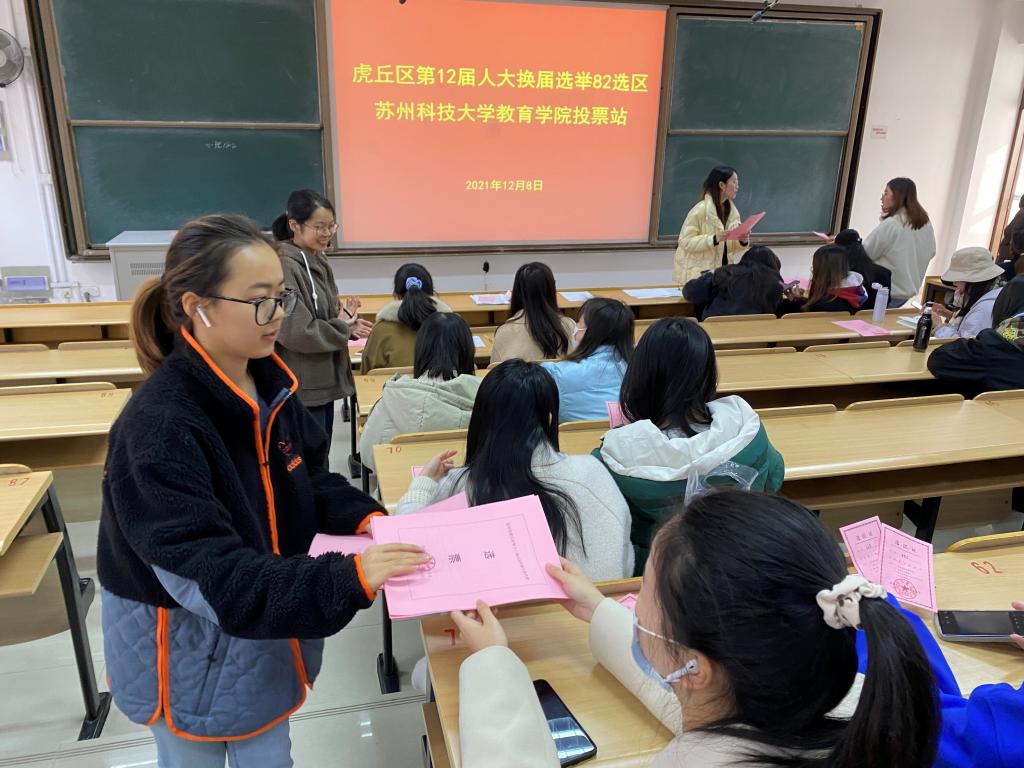 人大换届选举工作是人民政治生活中的一件大事,是发展全过程人民民主的重要实践。12月8日,我校33514名选民分别在石湖校区、江枫校区和天平校区共同参加虎丘区第十二届人大代表换届选举。