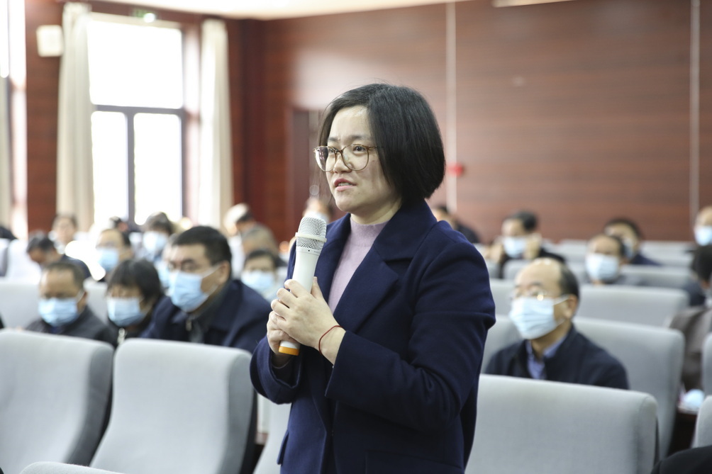 张庆奎就学校深入学习贯彻党的十九届六中全会精神,着力推动学校各项事业高质量发展提出三点要求:一要提高站位,充分认识党的十九届六中全会的重大意义。要深刻认识党的百年奋斗重大成就和历史经验,系统理解新时代的原创性思想、变革性实践、突破性进展、标志性成果,深刻领悟“两个确立”的决定性意义,把对“两个确立”的深刻领悟切实转化为做到“两个维护”的坚定自觉。二要学深悟透,迅速掀起学习宣传十九届六中全会精神的热潮。学习宣传贯彻党的十九届六中全会精神是当前和今后一个时期学校的重要政治任务。学校各级党组织要切实增强政治自觉、思想自觉和行动自觉,迅速兴起学习热潮,持续抓好全会精神的学习宣传贯彻。三要学以致用,推动学校事业高质量发展。学校各单位要坚持融合贯通、学以致用,引领师生自觉用习近平新时代中国特色社会主义思想武装头脑、指导实践、推动工作。把深刻领会《决议》重要内容和全会精神,与学习习近平总书记“七一”重要讲话精神结合起来,与学习省第十四次党代会精神结合起来,与做好学校当前重点工作结合起来,抓好学校“十四五”事业发展规划贯彻落实,高质量推进特色鲜明、品质卓越的高水平教学研究型大学建设,为“强富美高”新江苏现代化建设作出新的更大的贡献,以优异成绩迎接党的二十大胜利召开。