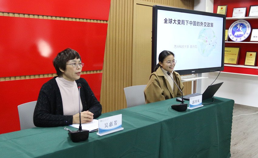 马克思主义学院郭丹凤博士为国际教育学院党总支作了题为《全球大变局下中国的外交政策》的专题宣讲。郭丹凤以新中国外交政策为主线,系统地介绍了中国特色大国外交政策,诠释了我国外交事业在中国共产党坚强领导下所取得的巨大成就。