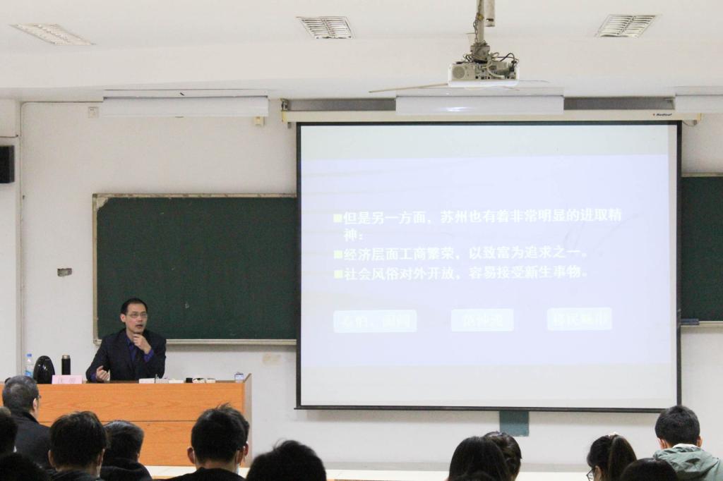 社会发展与公共管理学院沈骅副教授为机械工程学院全体师生党员作题为《百年苏州改革史》的宣讲。沈骅结合鲜活的史实,生动地讲解了苏州的改革发展历程,特别是苏州企业、苏南模式与外向型经济的发展历史,深入诠释了在中国共产党坚强领导下的苏州所呈现的城市精神与活力。