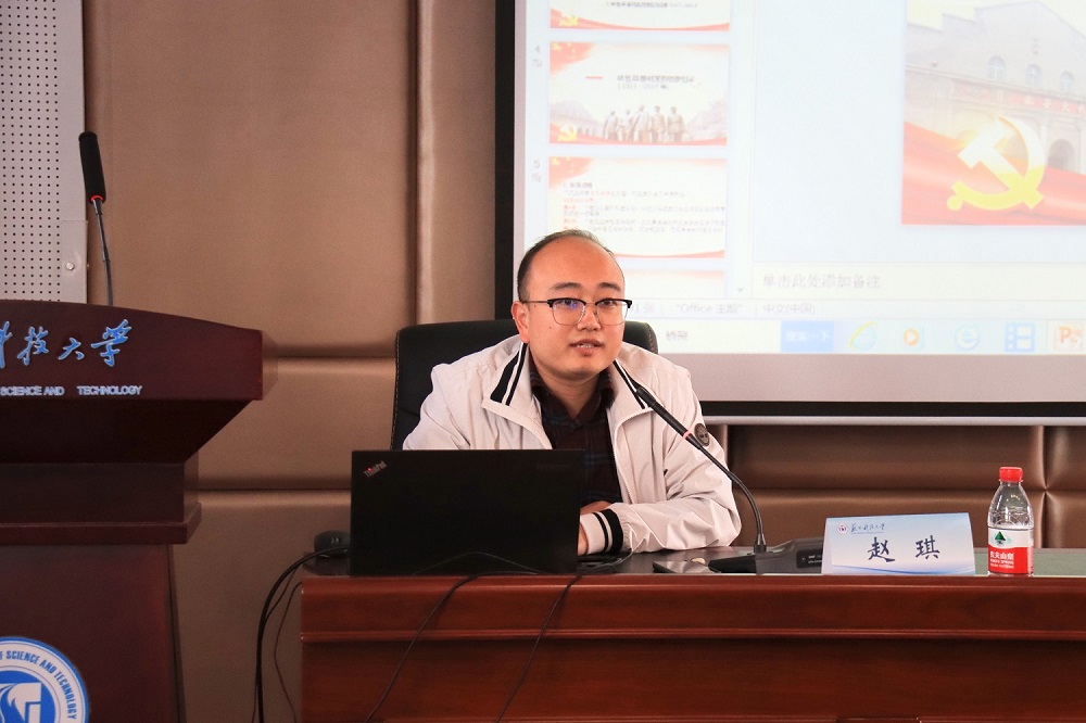 社会发展与公共管理学院赵琪博士为商学院党委、材料科学与工程学院党总支主讲《以史为鉴,开创未来——中国共产党纪检监察制度的百年历程》的专题报告。赵琪从纪检监察制度的初步创立、曲折发展、恢复与完善等方面,解读了中国共产党纪检监察制度的百年进程及经验启示。