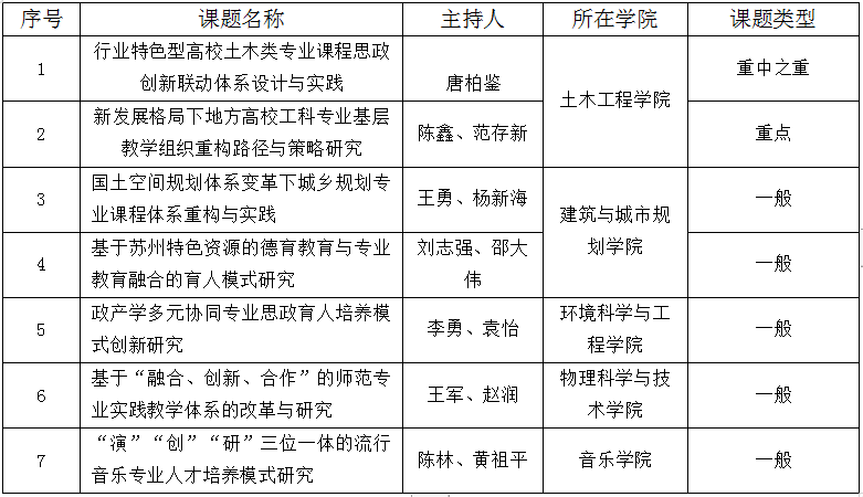 近日,江苏省高等教育学会发布了《关于公布2021年江苏省高等教育教改研究立项课题评选结果的通知》(苏高教会〔2021〕42号),我校7项课题获批立项,其中重中之重课题1项、重点课题1项、一般课题5项。获批的重中之重课题是由我校与河海大学等省内6所高校土木工程国家一流专业建设点合作申报。