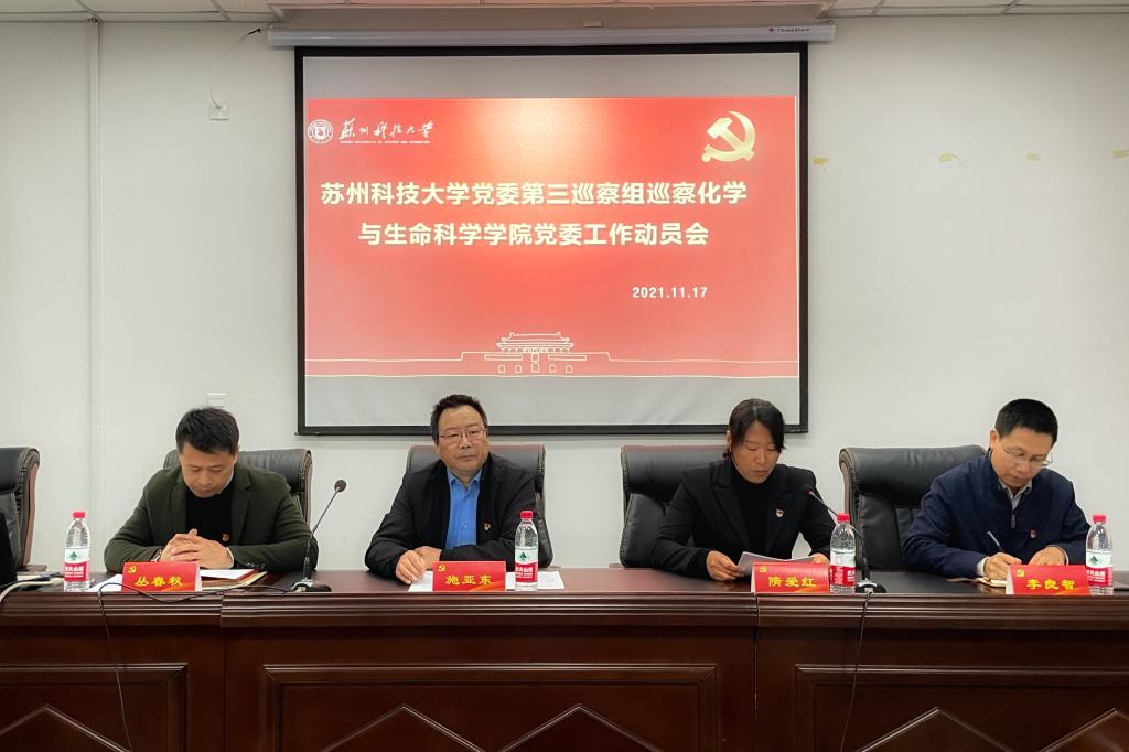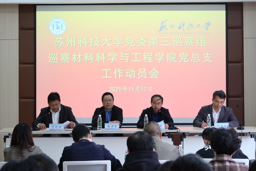 根据校党委统一部署,11月17日,苏州科技大学第三届党委第六轮巡察三个巡察组分别进驻艺术学院党委、数学科学学院党委、物理科学与技术学院党委、化学与生命科学学院党委、材料科学与工程学院党总支,并在被巡察单位召开了巡察工作动员会。被巡察单位党政领导班子成员、全体教职工以及巡察组全体成员参加了动员会。
