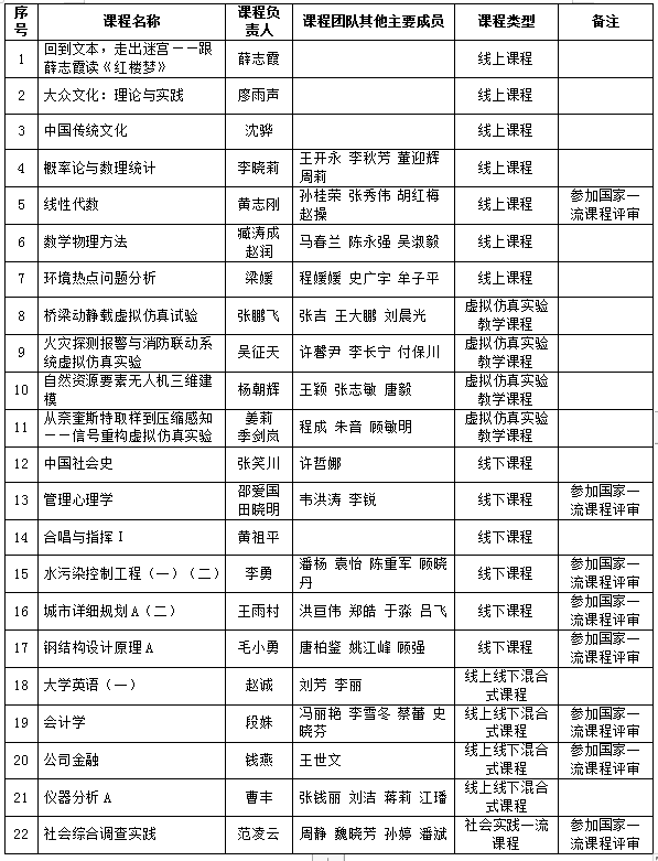 我校22门课程获批2021年省级一流本科课程