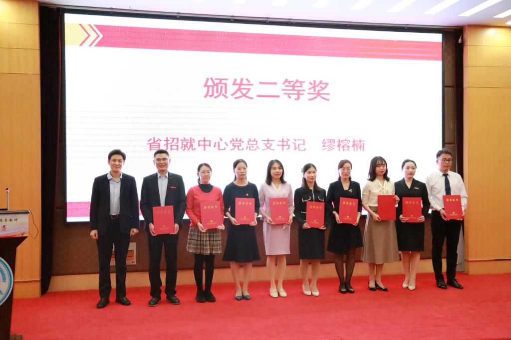 省委教育工委副书记苏春海,省招就中心主任胡建平,省招就中心党总支书记缪榕楠,我校党委副书记王荣庆、部分评委代表出席了颁奖仪式。胡建平介绍了本届大赛的总体情况。苏春海肯定了本届比赛取得的丰硕成果,要求全省高校树立就业育人理念,把立德树人融入就业创业指导的各环节;创新就业指导方法,充分运用新技术、新手段、新视野、新资源,及时有效解决学生在生涯规划、求职创业过程中遇到的实际问题;优化就业指导服务,汇集优师优课,通过平台共享资源,以点带面,激发创新,切实推动高校就业指导服务专业化水平的提升。