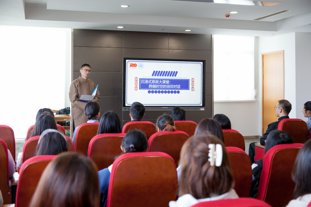 吴庆文一行来到图书馆,旁听了我校“沉浸式思政大课堂:跨越时空的信仰对话”党史专题研学活动。沉浸式思政大课堂是主要面向青年大学生的思想政治工作品牌,通过整合资源、创新形式,搭建工作矩阵,围绕担当时代使命主题,开展沉浸式理想信念教育。马克思主义学院姚新立博士以电视剧《觉醒年代》为切入点,组织青马党支部成员展开党史专题研学。课堂上,同学们就“南陈北李相约建党”等内容分享了自己的学习体会。