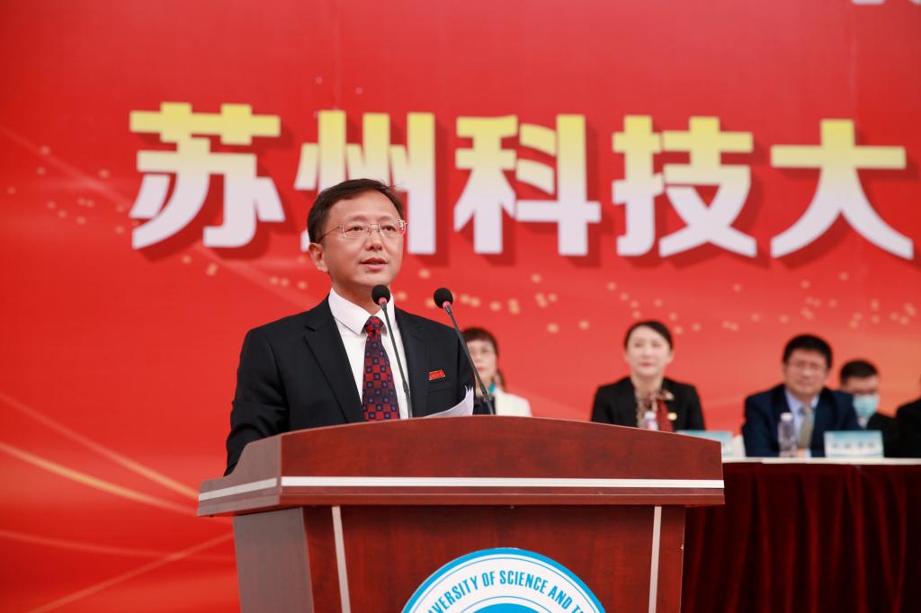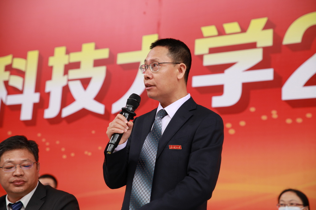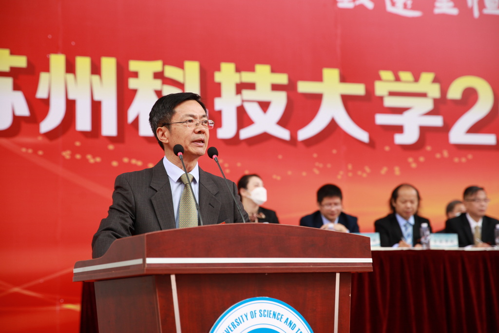 校长姜朋明发表了热情洋溢的讲话,为新生们带来了别开生面的开学第一课。“2021年注定是不平凡的一年,疫情防控常态化形势下的你们,在困难中破浪前行,在高考之战中披荆斩棘,在建党百年之际踏入苏科大开启新篇章,这是历史镌刻在你们身上的光荣印记,也是时代赋予你们的伟大使命!你们是朝气蓬勃、令人羡慕的时代新人,也是重任在肩、负载使命的一代人。你们生在红旗下,长在春风里,目光所致皆为华夏,五星闪耀皆为信仰,‘请党放心,强国有我’就是你们这一代人的不负使命的铮铮誓言和光荣承诺!”