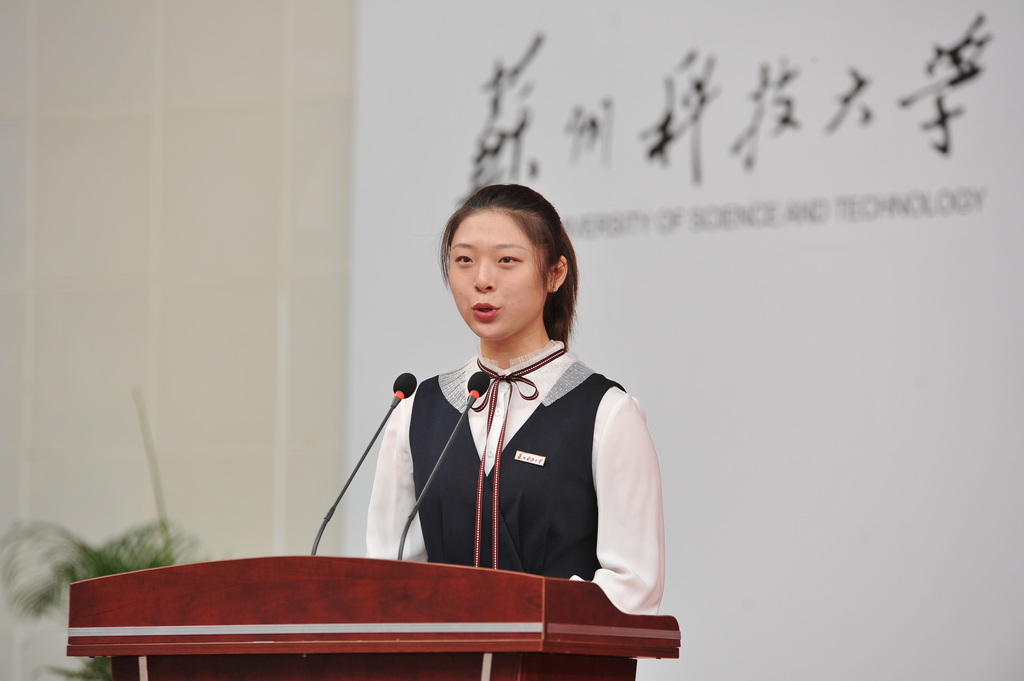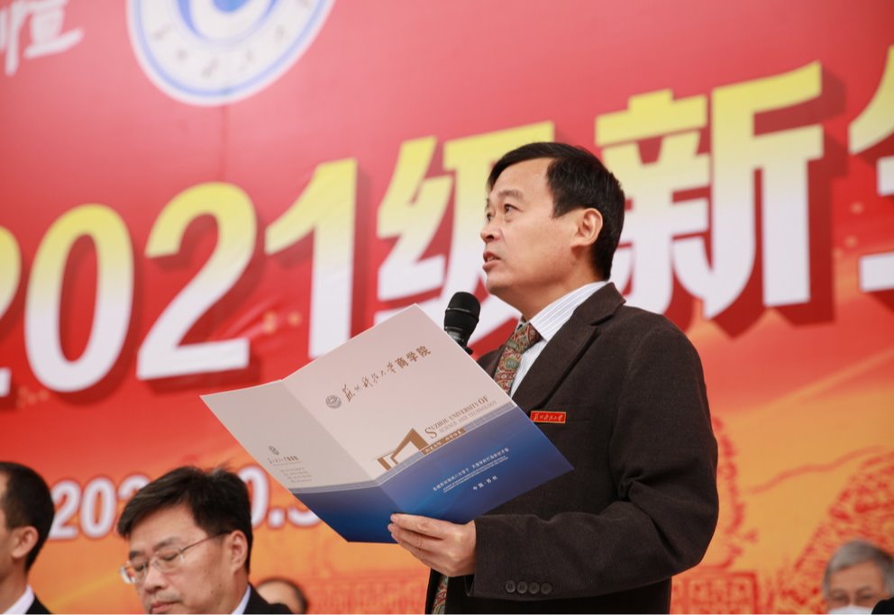 2021级研究生新生代表,艺术学院徐嫣同学号召同学们秉承“苏科大精神”,坚守初心,胸怀国家,放眼世界,向着梦想,披荆斩棘,乘风破浪。留学生代表、来自赞比亚的穆萨同学通过视频方式表达了在求学之路上用知识提升自我,成为所研究领域的佼佼者,造福国家和人民的愿望。建筑与城市规划学院硕士研究生卫常青号召学弟学妹们做有志青年、做有识青年、做有为青年。