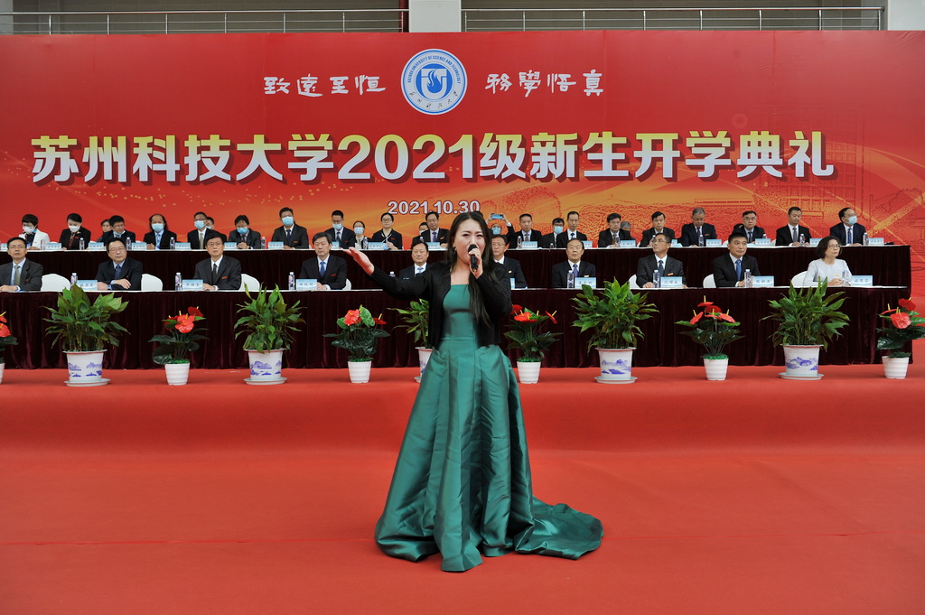 开学典礼前,暖场视频回顾了新生报到来校的点点滴滴。由大学生艺术团带来的《年少有为》《我爱你中国》等歌曲串烧,表达了苏科大学子对祖国深深的热爱,音乐学院刘育冶老师倾情演唱《跟你走》,带领大家在慷慨激昂的歌声中重温党的光辉历程,点燃了全场氛围。
