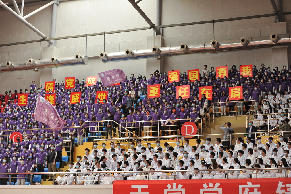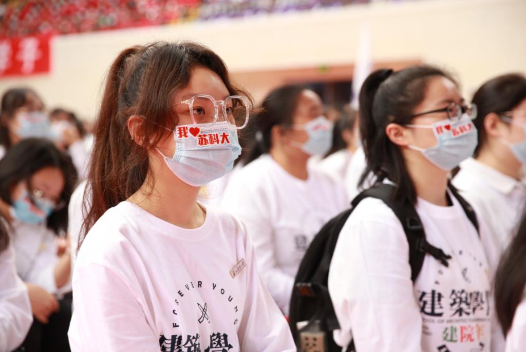 各教学单位负责人向2021级全体新生深情寄语,祝愿新生们逐梦苏科大,成就新未来。新生们高举“请党放心 强国有我”等标语热烈回应。