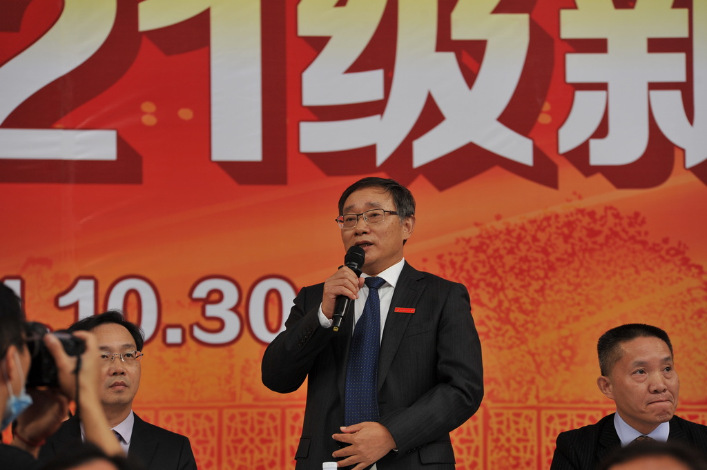 2021级本科生新生代表,环境科学与工程学院、敬文书院江圣杰同学发言,表示将坚定信念,树立远大理想;力争向上,不留遗憾;敢于直面挫折,接受挑战。在校生代表、马克思主义学院杨紫艺同学鼓励新生心有所向,行必能至;心有所信,方能行远;心怀朝气,芬芳自来。