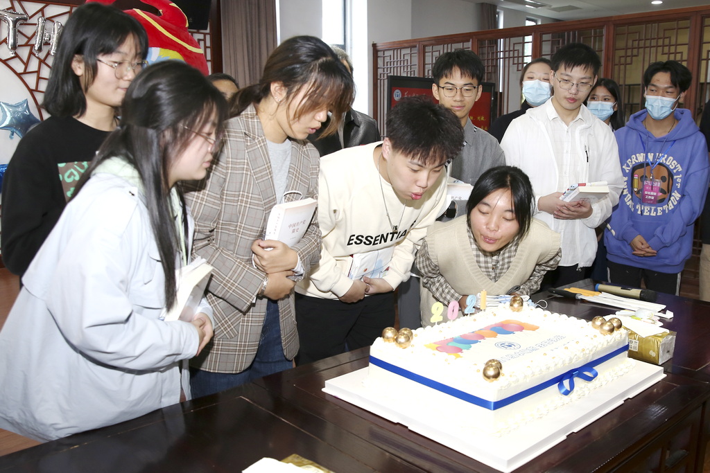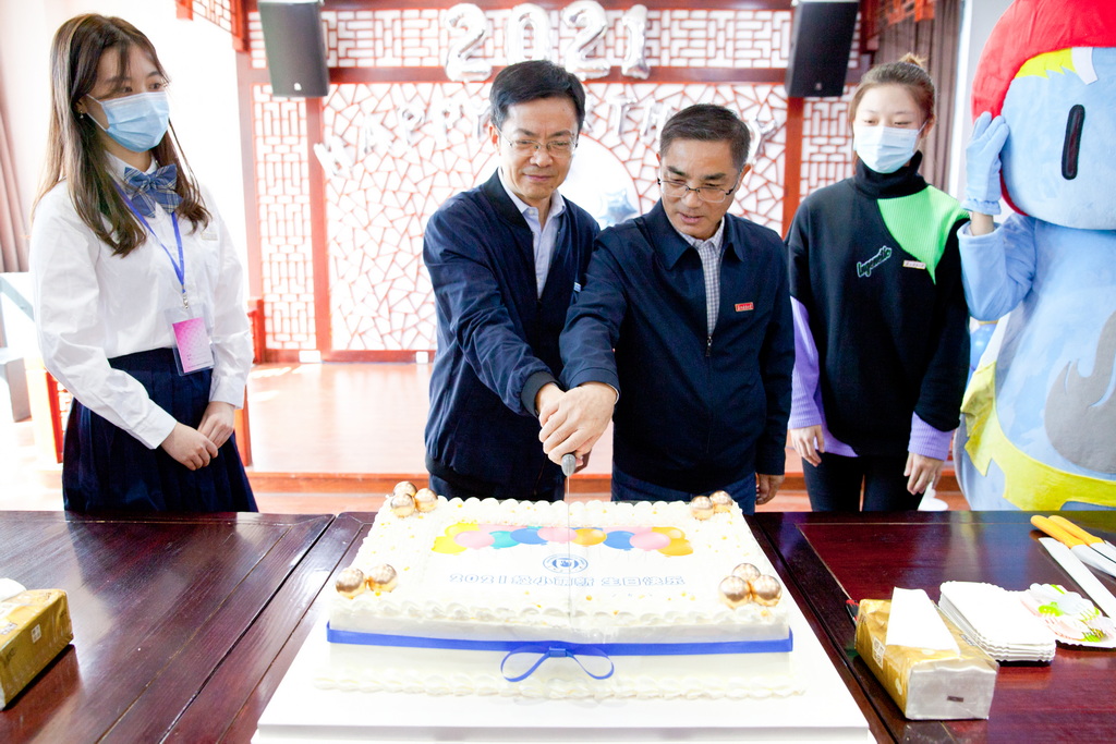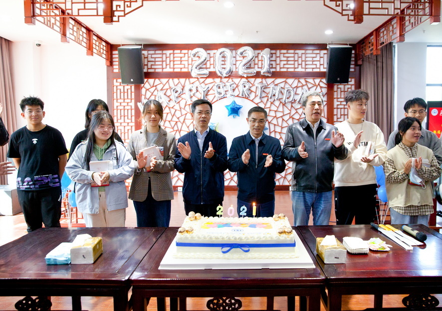 10月17日是8名新生的生日,学校在敬文书院为新生们举行了别开生面的集体生日会,给新生们送上入校后的第一个惊喜。校党委副书记王荣庆、副校长沈耀良,相关职能部门负责人一起为小寿星们送上生日祝福。王荣庆表示:“同学们在中国共产党成立百年华诞之际成为一名大学生,生逢其时;在坚定走向第二个百年奋斗目标的征程中,将成为国家栋梁。希望你们确立理想目标,学好专业知识,培养综合能力,涵养人文情怀,讲诚信、守纪律、守底线,实现个人价值,成就精彩人生,为实现中华民族伟大复兴贡献力量。”