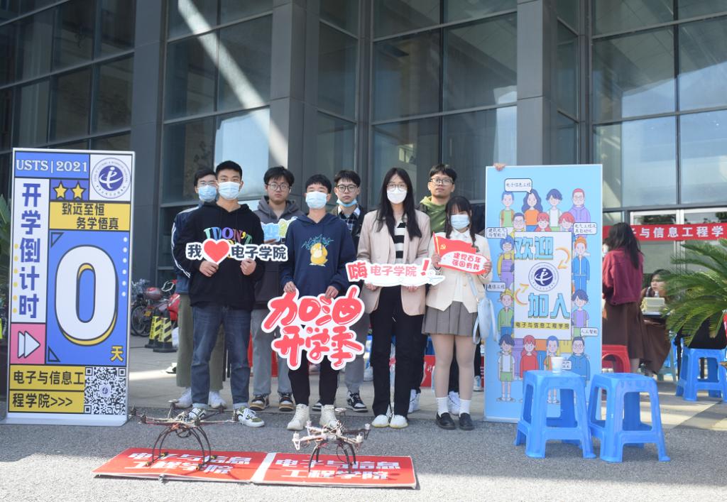 电子与信息工程学院为新生精心准备了印有校训和院训的帆布包,定制卡套、安全教育手册、心理健康教育手册等,装满了学院的期待;丰富的“大学生科技成果展示”,无人机、机器人和智能赛车等近年来的科技成果展示,为新生播下了创新的种子,营造了创新创业的氛围。