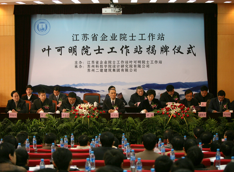 作为我校杰出校友,叶可明院士始终心系学校发展。2009年12月18日,苏州科技学院(苏州科技大学前身)叶可明院士工作站揭牌仪式举行。叶可明院士在发言中表示,回到母校工作感到十分高兴和荣幸,将充分利用院士工作站这个平台,结合自己的研究方向,积极开展校企合作,开展科学研究和重大科技攻关,增强自主创新能力培养,并对江苏省科技厅、苏州市政府、学校的支持表示感谢。工作站成立后,积极参与重大科技项目的技术研究和支撑,广泛开展产学研合作,大力服务苏州地方发展。叶可明院士工作站积极参与苏州市地标性建筑“东方之门”建设技术攻关,解决了“东方之门”施工中的多项技术难题。