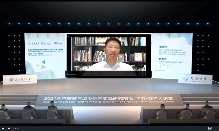 9月25日,“2021生态智慧与城乡生态实践研究前沿”同济-苏科大讲堂在我校建筑与城市规划学院成功举办。讲堂由同济大学建筑与城市规划学院、我校建筑与城市规划学院、同济大学生态智慧与实践研究中心共同主办,美国宾夕法尼亚大学设计学院协办。讲堂以线上方式举行,通过多个在线平台直播,直播峰值流量累计高达上万人。