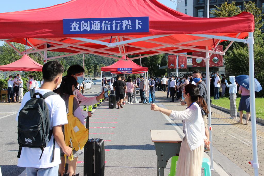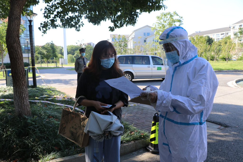 经工作人员核实发现,一名学生为“暂缓返校”学生,现场工作人员将他们带至等待处置区,并通知学生所在学院辅导员。辅导员立即赶赴现场协助处置,学校安排专车将他送至集中隔离观察场所。