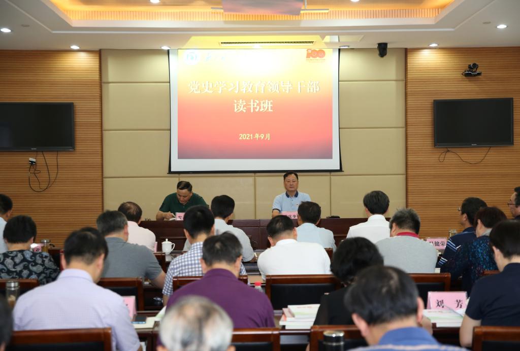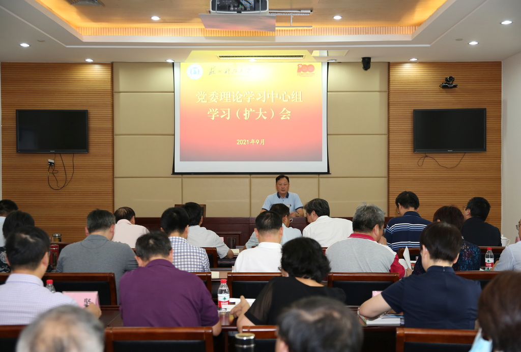 9月22日下午,校党委理论学习中心组专题学习(扩大)会暨党史学习教育领导干部读书班第三次集体学习会在行政楼一楼视频会议室召开。校党委理论学习中心组成员、各二级党组织书记参加了会议,会议由校党委书记张庆奎主持。