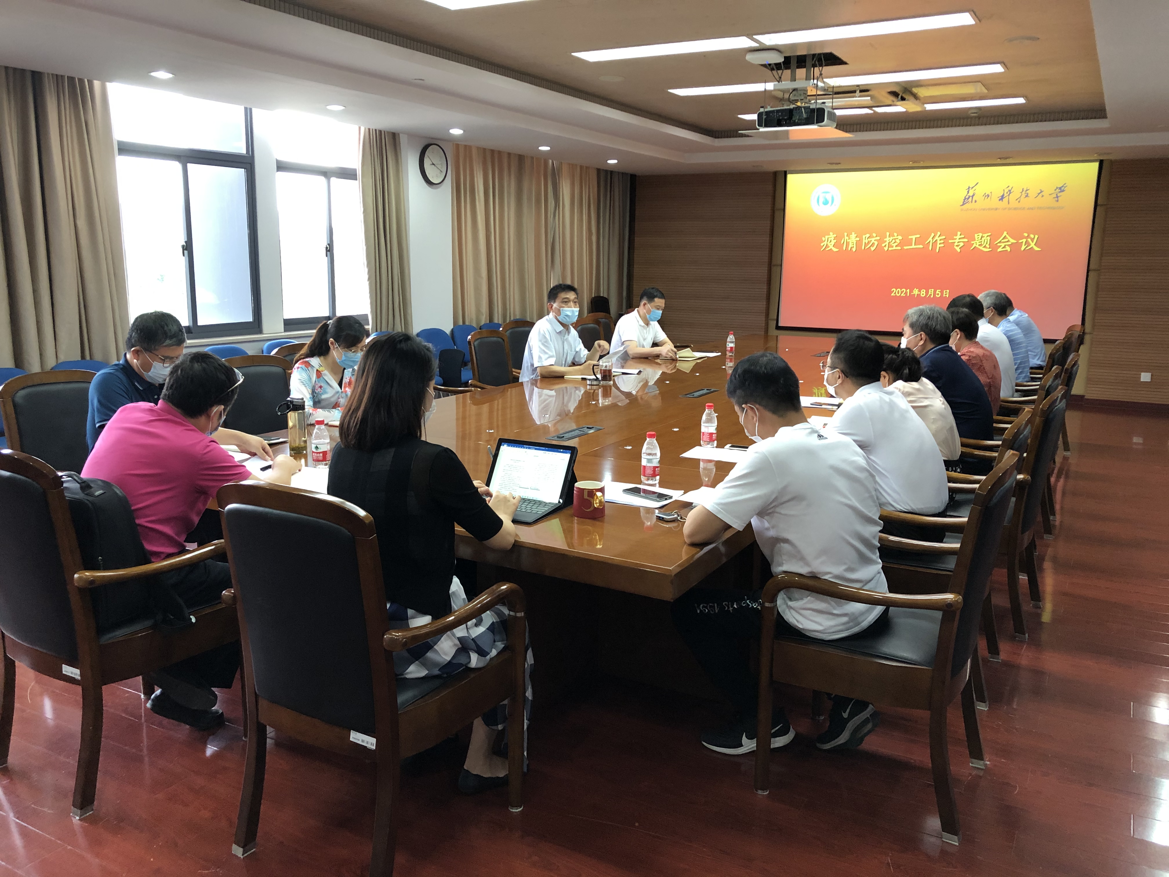8月5日上午,学校在行政楼四楼会议室召开疫情防控工作专题会议,深入学习贯彻江苏省、苏州市近期关于疫情防控工作的通知要求,分析研判近期疫情防控形势,对我校当前疫情防控及秋季开学等工作进行研究部署。学校疫情防控工作领导小组各工作组组长参加会议。会议由副校长张新亚主持。