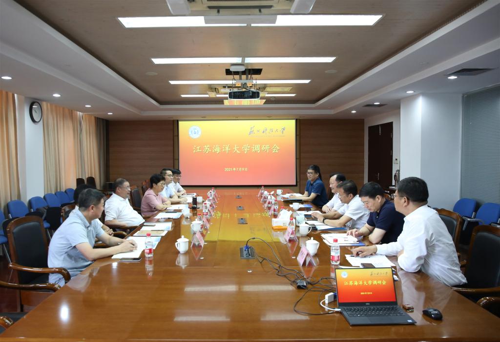 7月9日,江苏海洋大学党委书记王自力、副校长李梅英一行来校调研,校党委书记张庆奎、校长姜朋明、副校长吴健荣,党办、校办、学科办、科技产业处、材料科学与工程学院等单位负责人参加了座谈和交流。
