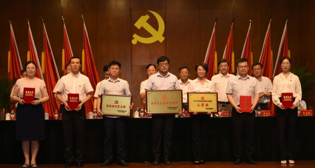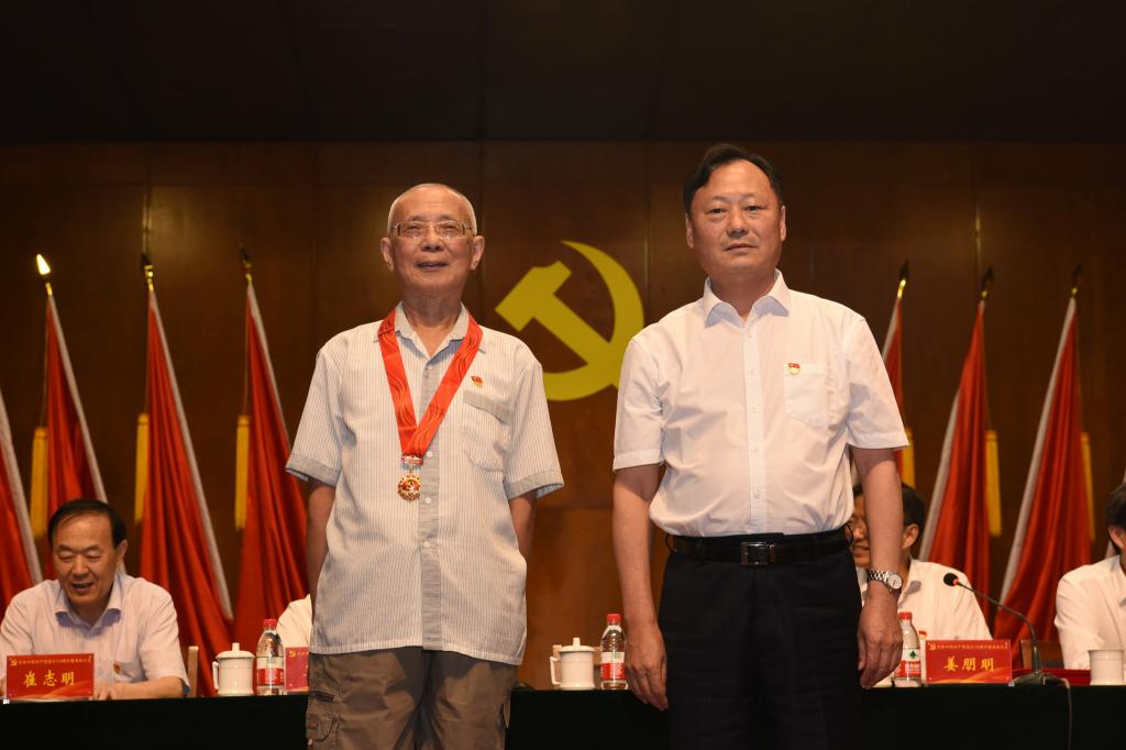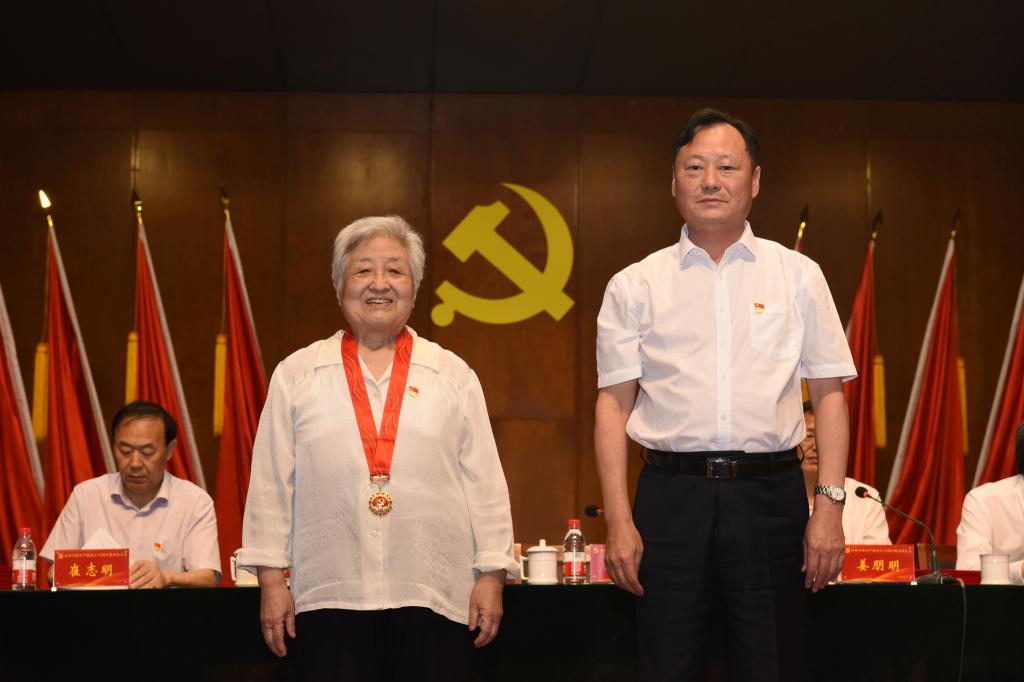 校党委副书记王荣庆宣读获得“光荣在党50年”纪念章名单、获市级以上党内表彰名单;校党委副书记、副校长田晓明宣读获校级党内表彰名单、“双带头人”教师党支部书记工作室建设单位名单。校党委书记张庆奎向“光荣在党五十年”的老党员代表颁授纪念章,校党委常委向先进集体和优秀个人颁奖。