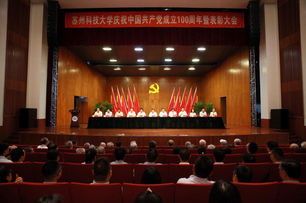 百年恰是风华正茂,千秋伟业逐梦前行。6月30日下午,学校在石湖校区音乐厅隆重召开庆祝中国共产党成立100周年暨表彰大会,回顾我们党百年奋斗的辉煌历史,赓续共产党人的精神血脉,汲取开启现代化建设新征程的磅礴力量。大会向我校获得“光荣在党50年”纪念章的老党员、老同志颁授纪念章,并对2020-2021年度在推动学校事业和党的建设高质量发展中涌现出来的先进基层党组织和优秀个人进行表彰,校党委常委、校领导、校级老同志、校中层干部,获得校级以上党内荣誉的基层党组织和个人代表,全体党支部书记、师生党员代表等出席大会。校党委书记张庆奎发表讲话,大会由校长姜朋明主持。