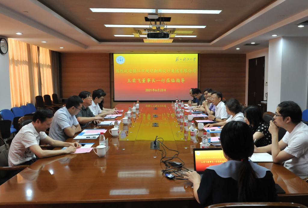 近日,镇江市规划勘测设计集团有限公司党委书记、董事长王荣飞一行来校调研。苏州市住房和城乡建设局调研员周勇华,我校校长姜朋明、副校长施琴芬、科技产业处及相关学院负责人、教师骨干参加了此次调研会。会议由施琴芬主持。